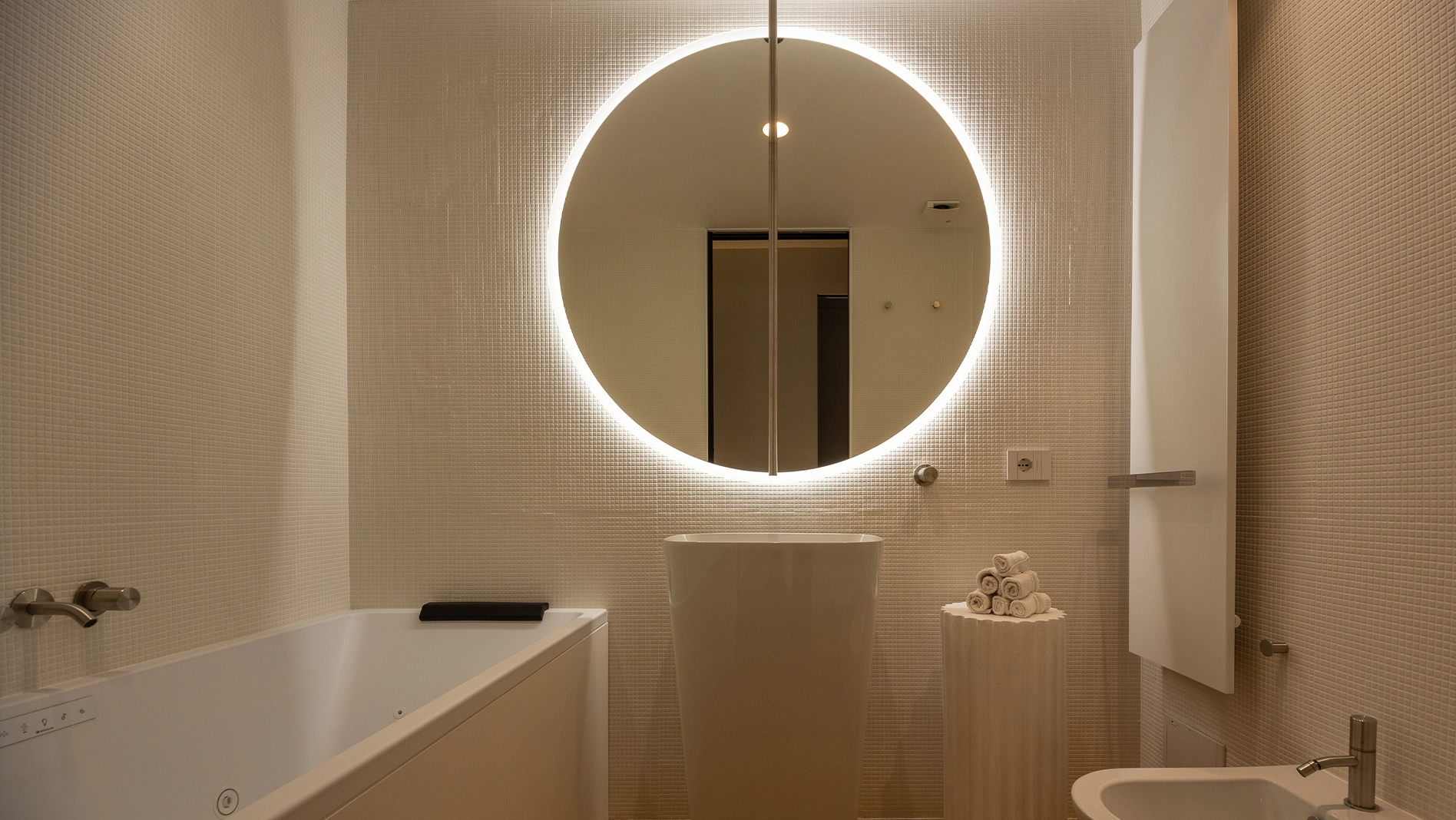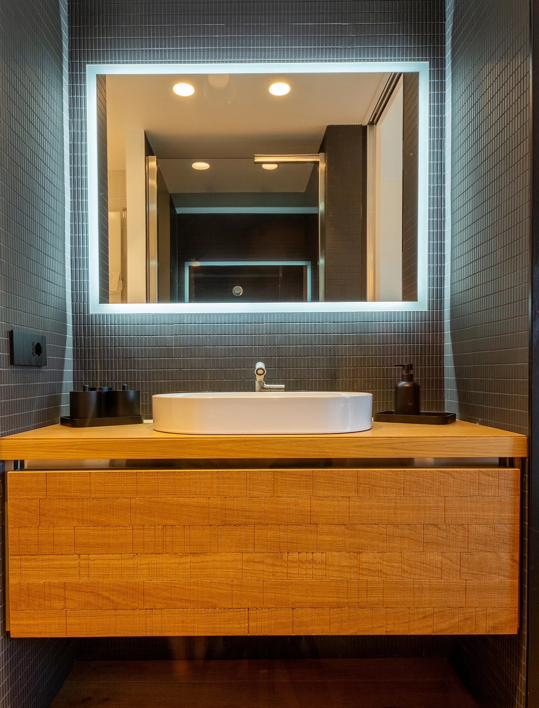 Casa TASS è un progetto che celebra il minimalismo come linguaggio architettonico, affidandosi a pochi materiali e a un’estetica di estrema raffinatezza contemporanea. Gli spazi si distinguono per la purezza delle linee e la sobria eleganza delle superfici, che lasciano alla luce naturale il ruolo di protagonista assoluta.La relax room si apre come un ambiente intimo e contemplativo, dove la palette neutra incontra texture sofisticate. Una parete scura, dal disegno materico e profondo, dialoga con il divano modulare dalle forme morbide e avvolgenti, mentre il pavimento in legno chiaro scalda l’atmosfera. Le ampie finestre incorniciano scorci urbani, creando un legame diretto tra interno ed esterno e invitando al riposo e alla meditazione. La cucina, interamente rivestita in acciaio inox, esprime una precisione quasi scultorea. Le superfici riflettenti amplificano la luce e conferiscono un carattere industriale ma elegante, esaltando la purezza del design e l’attenzione ai dettagli. Ogni elemento di Casa TASS è pensato per esprimere essenzialità e armonia. L’uso calibrato di materiali pregiati e la scelta di arredi dal design rigoroso ma accogliente trasformano gli spazi in un’esperienza sensoriale che unisce comfort e modernità, incarnando pienamente l’idea di un minimalismo sofisticato e senza tempo.