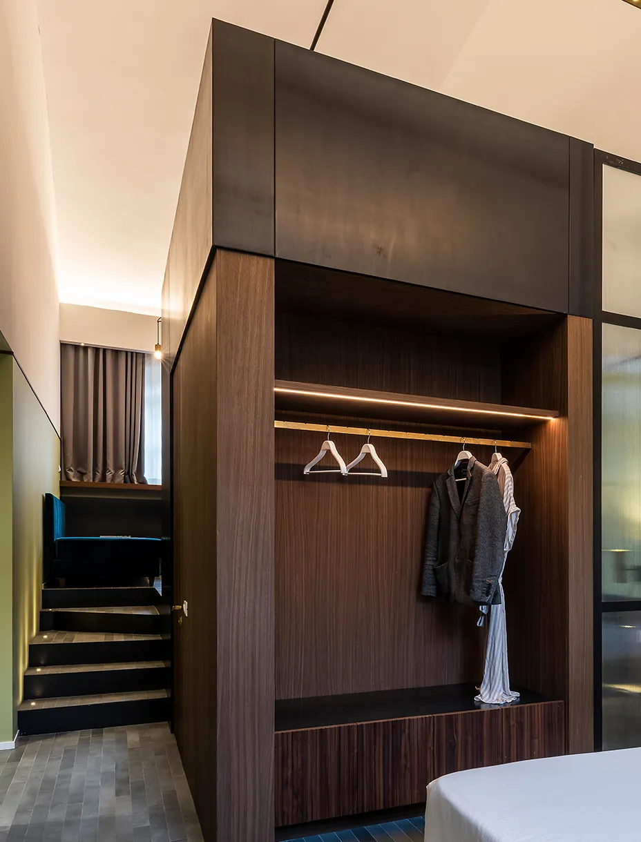 Il progetto, sviluppato in collaborazione con la proprietà e con lo Studio Stabili, si distingue per un’estetica essenziale e raffinata, capace di coniugare rigore e poesia. Linee pulite e dettagli sartoriali riflettono l’anima autentica di Horti 14: un’ospitalità di lusso elegante, radicata nella tradizione ma aperta al contemporaneo.