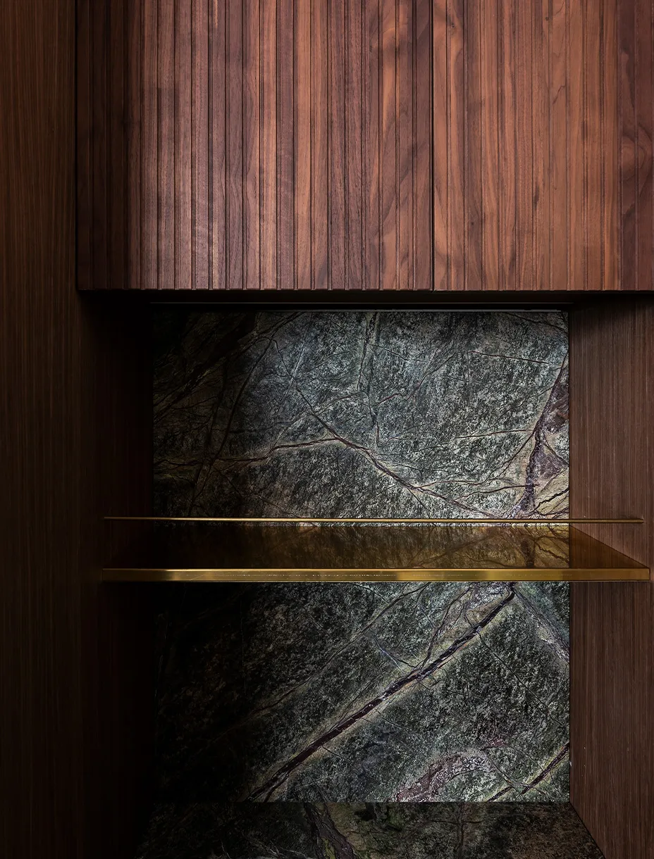 Le boiserie in legno, le superfici e gli arredi diventano parte integrante del linguaggio architettonico: materiali nobili come il noce e il frassino vengono esaltati nella loro purezza materica, nella capacità di restituire calore, profondità e autenticità. Un esempio di falegnameria artigianale di alta qualità che rende gli spazi accoglienti ed eleganti.