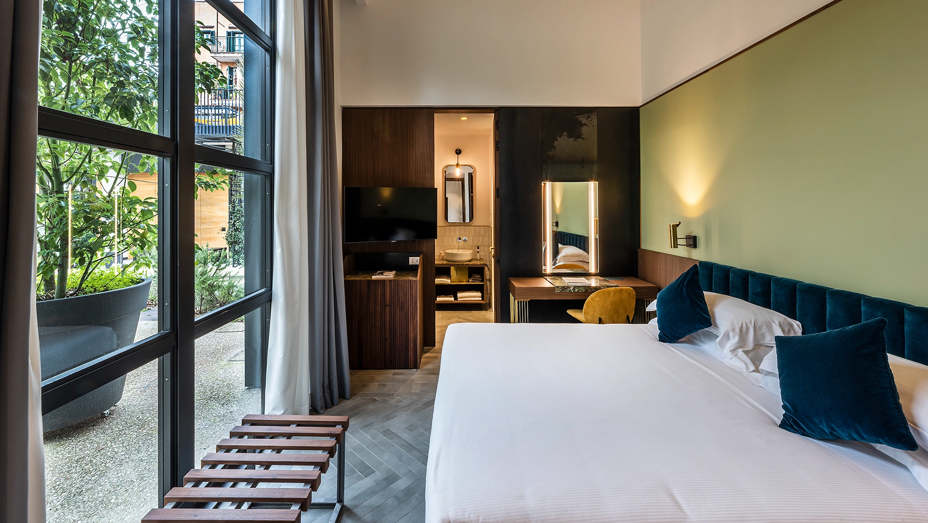Hotel Horti 14 è un progetto che nasce in perfetta simbiosi con l’Orto Botanico di Roma, un luogo dove il respiro della natura incontra la misura dell’architettura. Ogni ambiente è pensato come estensione del giardino, trasformando l’esperienza dell’ospite in un percorso sensoriale immerso nella bellezza.