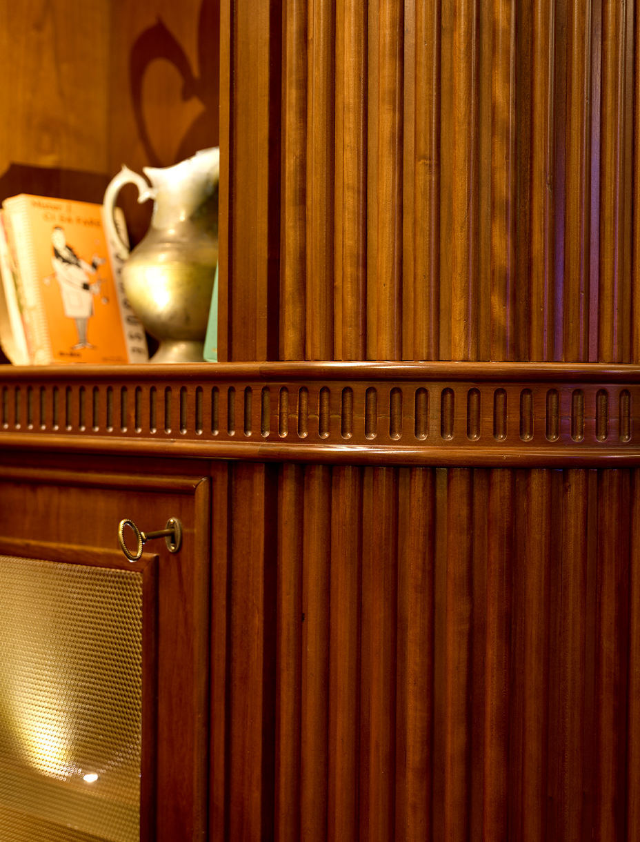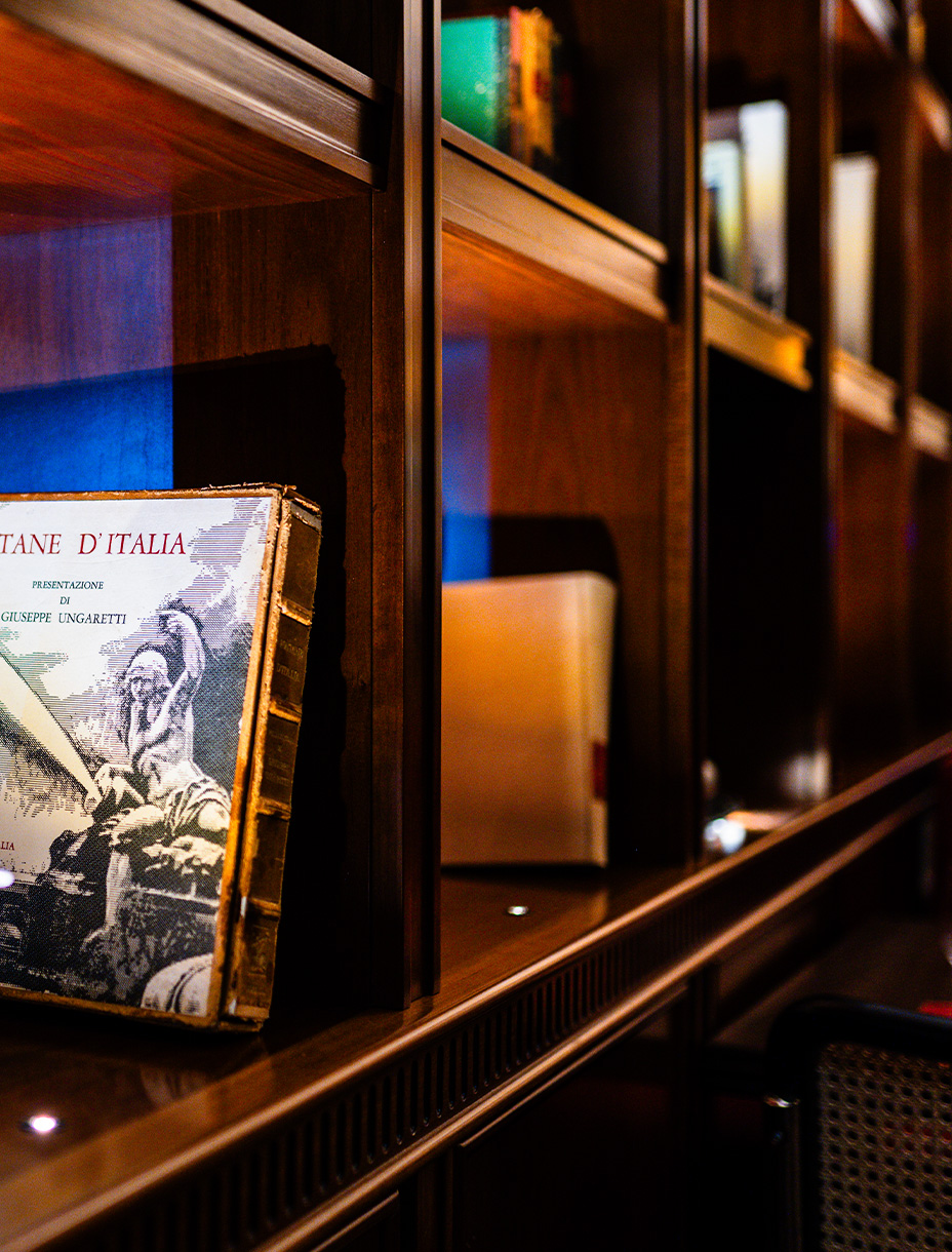 Con lo Studio Integra Design, abbiamo realizzato per il ristorante Il Clementino di Roma un ambiente tailor-made: boiserie su misura, librerie centrali, arredi pensati per dialogare con la storia del quartiere. Le nostre realizzazioni non sono semplici complementi, ma attorno e insieme alle pareti, ridefiniscono l’atmosfera, definendo limiti e accogliendo il visitatore in un abbraccio di materia e luce.